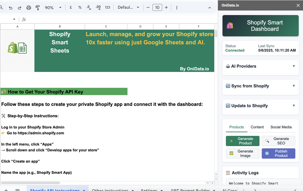 Shopify + Google Sheets connect via API (Blogs, Products, Orders, AI & More )