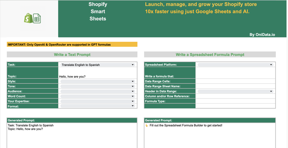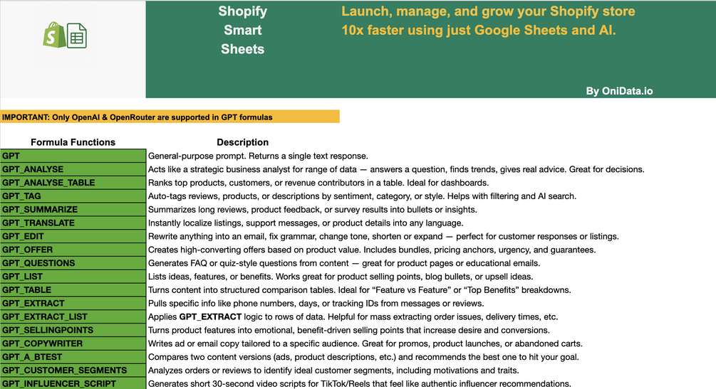 Launch faster, write better, and grow your store — using nothing but Google Sheets + AI.